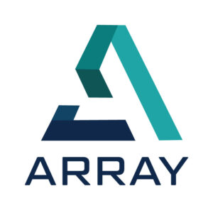 The ARRAY logo features a modern and geometric design, utilizing overlapping shapes in shades of blue and teal to convey unity, structure, and innovation. The bold typography balances the sleek design, making it highly versatile for branding across platforms.